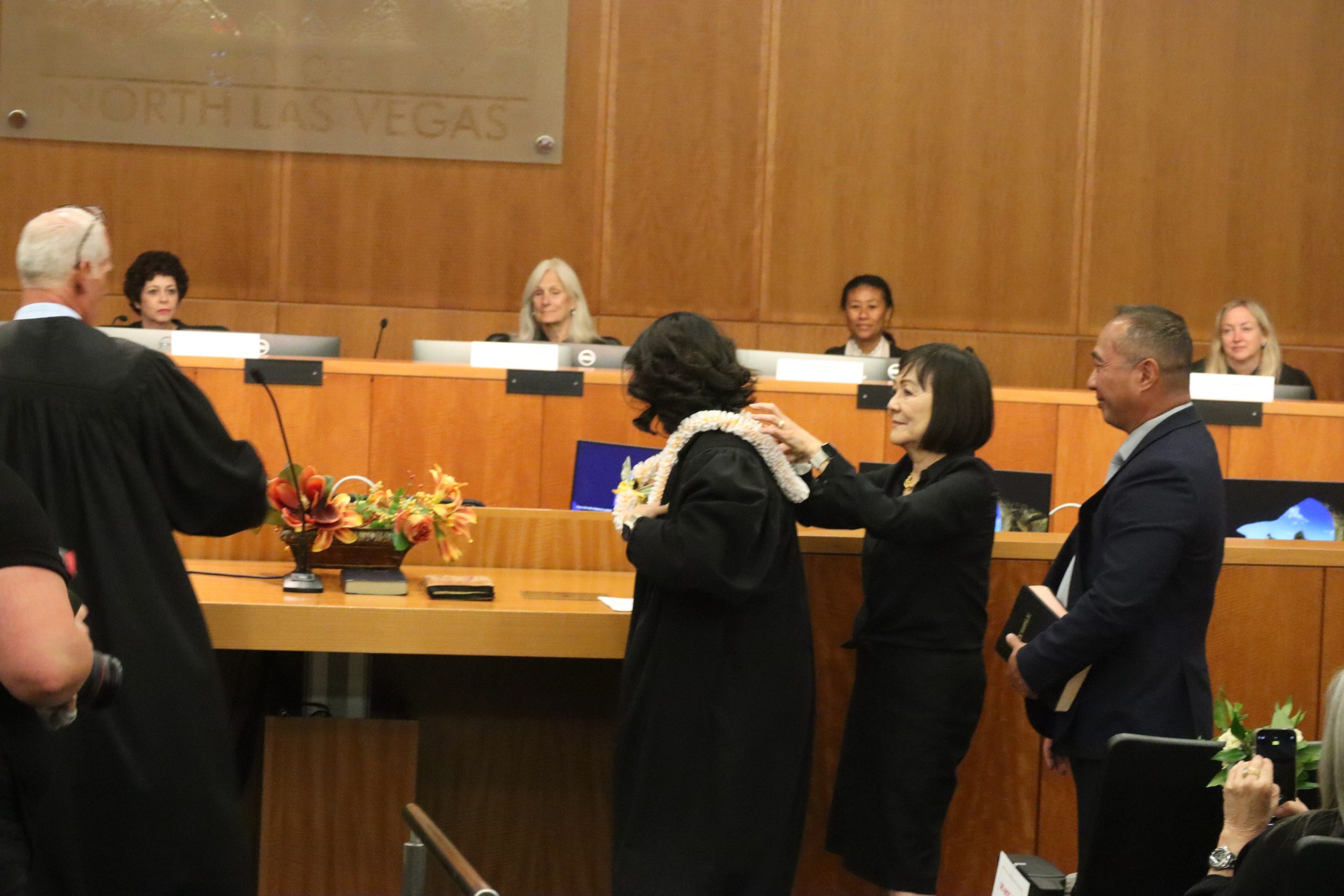 Las Vegas is home to a large Hawaiian community. It is referred to by some as “the ninth island.” The beauty of the Hawaiian culture was shared at the investiture of Judge Danielle K. Chio and Judge Jacob A. Reynolds. Judge Chio is the first woman of Hawaiian ancestry to serve on the District Court bench in Nevada.